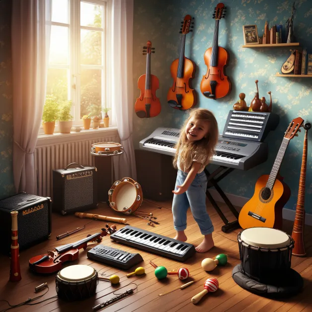 การเริ่มต้นให้ลูกน้อยของคุณเล่นเครื่องดนตรีเป็นแนวทางที่ดีในการพัฒนาทักษะต่าง ๆ ของเขา คุณสามารถเลือกเครื่องดนตรีง่าย ๆ อย่างกลอง เบส หรือกีตาร์ ซึ่งจะช่วยเสริมสร้างความคิดสร้างสรรค์และความสนุกสนานให้กับเขา เริ่มจากการสอนให้เขารู้จักโน้ตเบื้องต้นและการจังหวะต่าง ๆ เพื่อสร้างประสบการณ์ที่สนุกสนานและมีความหมายในช่วงวัยนี้